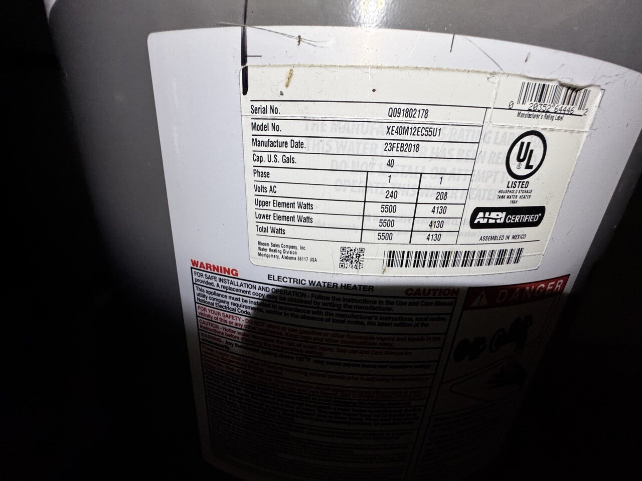 - Hot Water Heater – 2018
